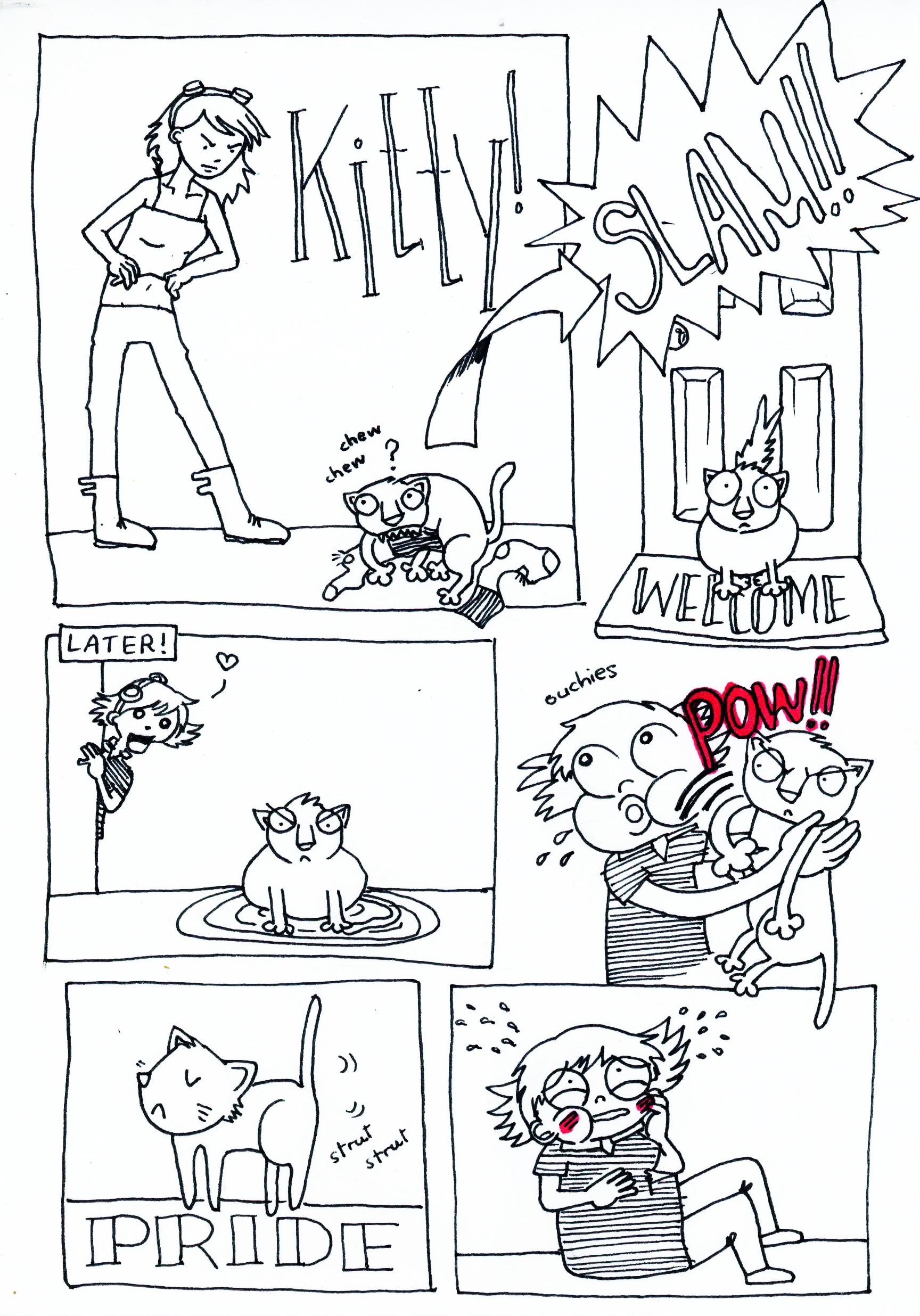 Lately, I haven’t been drawing out any new comics to share, but I have been illustrating little bits here and there as commission work… Who would’ve thought that drawing raging, violent bastards could be so much fun?! I mean, I don’t think I’ve been more pensive than usual lately, but I had no idea doodling a brawl could be so rewarding! (Thank you for the opportunity, Joel!)